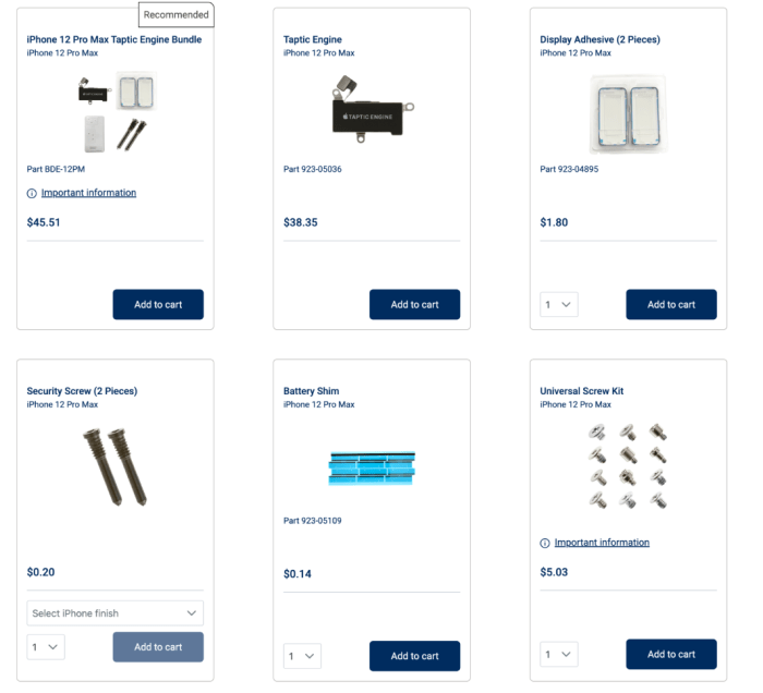 To give you an idea of the cost, the iPhone 12 and 13 batteries cost $ 69, the displays cost between $ 225.96 and $ 309.96, and the camera module costs about $ 110.